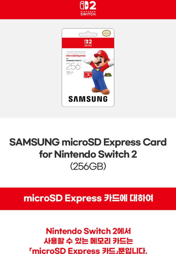 - 속도와 가성비: 간혹 **'일반 메모리 카드'**를 사용하시는 분들이 있는데, 스위치 2는 빠른 속도로 데이터를 읽어야 로딩 지연이 없습니다. 닌텐도 스위치 2 전용으로 설계된 삼성 Micro SD 카드는 일반 메모리 카드들보다 살짝 비싸도, 스위치 2가 빠르게 읽을 수 있도록 최적화되어 있기 때문에, 성능을 고려하면 용량 대비 가격이 오히려 착한편입니다!